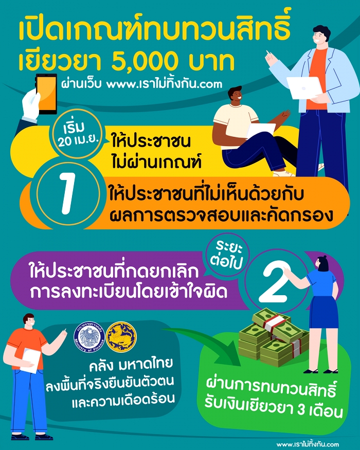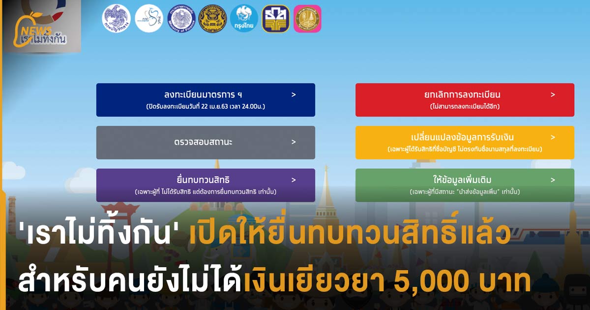 Source: image.bangkokbiznews.com ตรวจสอบสถานะเราไม่ทิ้งกัน ใครขึ้นข้อความ ไม่ได้รับสิทธิ์ เตรียมยื่นอุทธรณ์ขอรับเงินเยียวยา 5,000 บาท ได้ที่ www.เราไม่ทิ้งกัน.com ที่ปุ่ม ขอทบทวน. กระทรวงการคลัง ตอบข้อสงสัย ลงทะเบียน เราไม่ทิ้งกัน รับเงิน 5,000 บาท สถานะอยู่ระหว่างตรวจสอบ ต้องรอนานแค่ไหน ถึงจะรู้ผล ต้องทำอย่างไรต่อ. เราไม่ทิ้งกัน ลงทะเบียน 5 000 เงินเยียวยา ตรวจสอบสิทธิ์เราไม่ทิ้งกัน www.เราไม่ทิ้งกัน.com เช็คสิทธิ์ Www.เราไม่ทิ้งกัน.com แก้อย่างไร หาก ตรวจสอบสิทธิ์เราไม่ทิ้งกัน แล้ว ชื่อบัญชีไม่ถูกต้อง ด้าน ธ.กรุงไทย แนะนำเทคนิค เช็คสิทธิ์ ลงทะเบียนรับ เงิน5000. เราไม่ทิ้งกัน เช็คสิทธิลงทะเบียน รับเงินเยียวยา 5 000 www.เราไม่ทิ้งกัน.com ตรวจสอบสิทธิ์เราไม่ทิ้งกัน ตรวจสอบสถานะเราไม่ทิ้งกัน